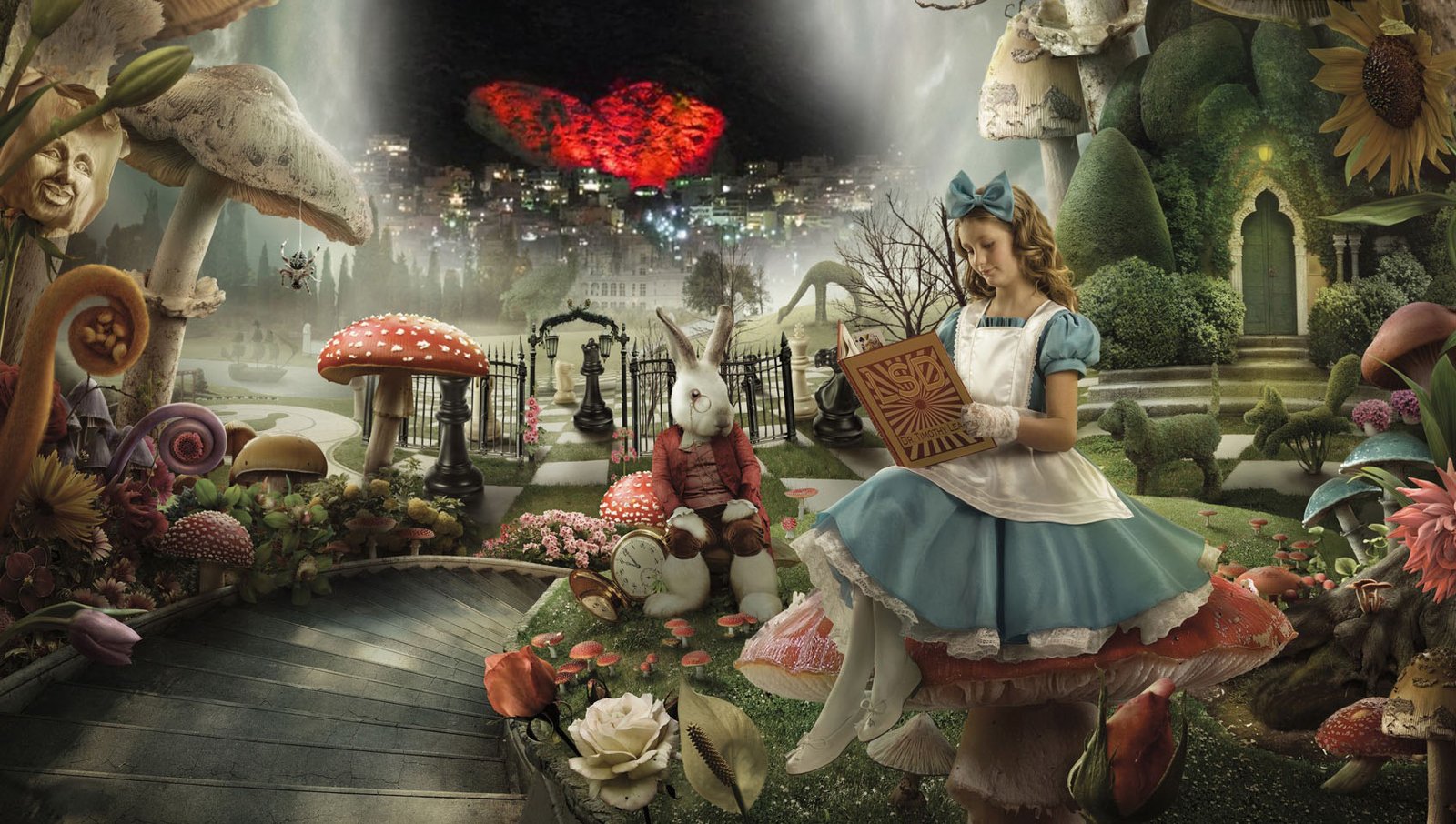 Σε αυτό το παράδοξο κτίριο, Γενικό κουμάντο αντί για την Βασίλισσα της Καρδιάς, έκανε μια υπάλληλος που φώναζε «Εκτός ωραρίου!» ή «δεν δικαιούσθε» για κάθε αίτημα, ενώ ο Τρελοκαπελάς ήταν υπάλληλοι που υποσχόταν να έρθει “μετά τις τρεις, ίσως και αύριο”. Ο Βαγγέλης προσπάθησε να διαμαρτυρηθεί, να ρωτήσει, να καταλάβει, αλλά κάθε του λέξη χανόταν στον βουβό θόρυβο των γραφειοκρατικών αδιεξόδων και της διάλυσης του συστήματος. Οι νόμοι της λογικής είχαν ανατραπεί: το “ναι” σήμαινε “όχι”, το “σήμερα” σήμαινε “ποτέ”, και το “απλό” σήμαινε “αδύνατο”.