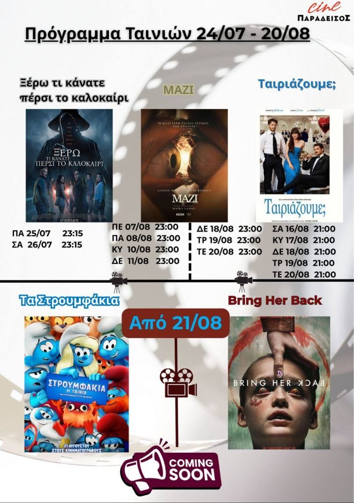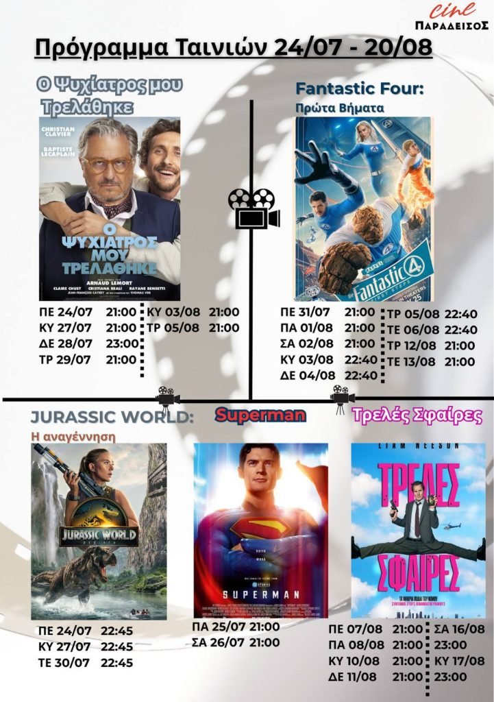 Δήμος Κορυδαλλού: Νέο Πρόγραμμα Cine Παράδεισος | 24 Ιουλίου – 20 Αυγούστου