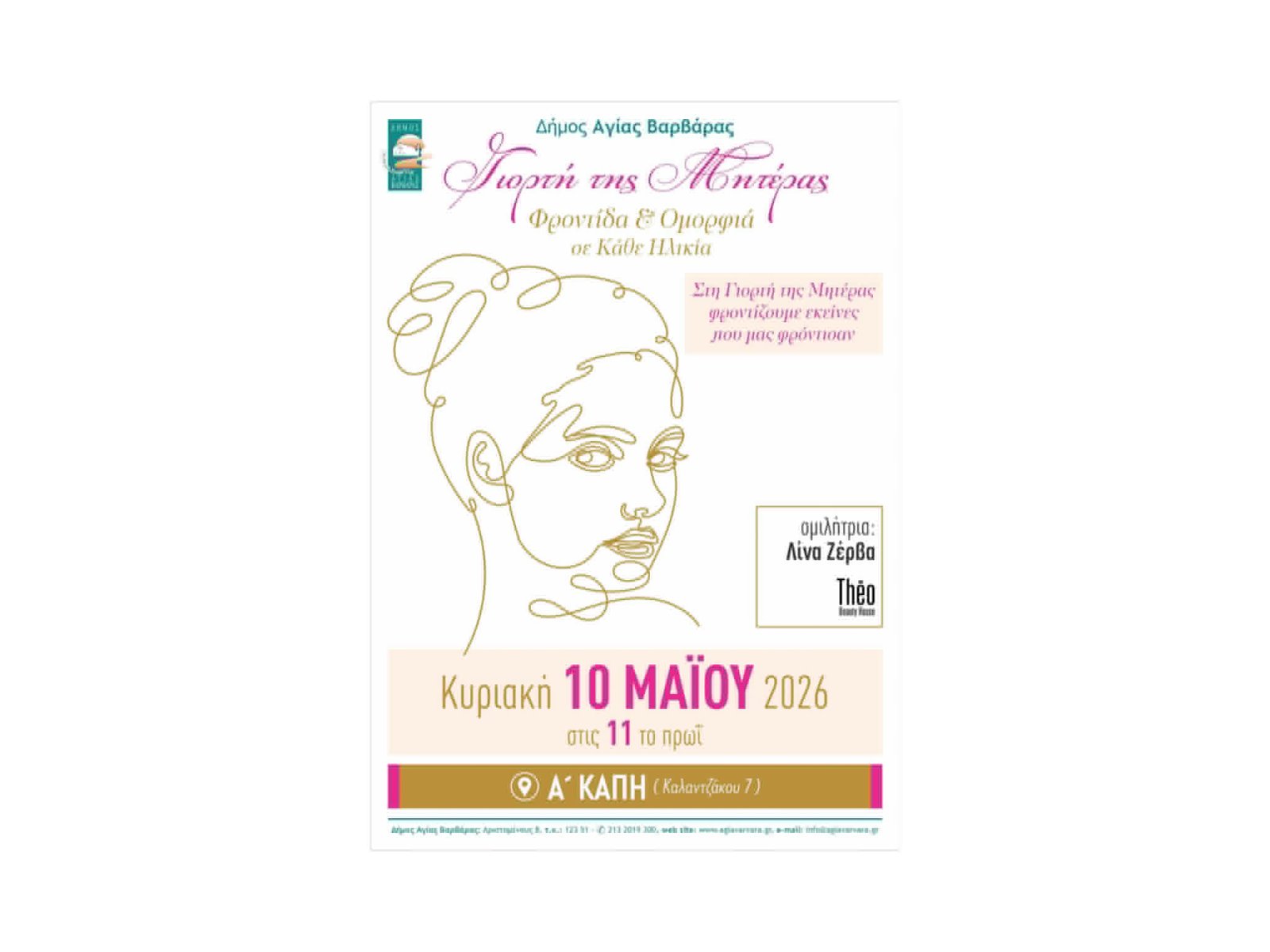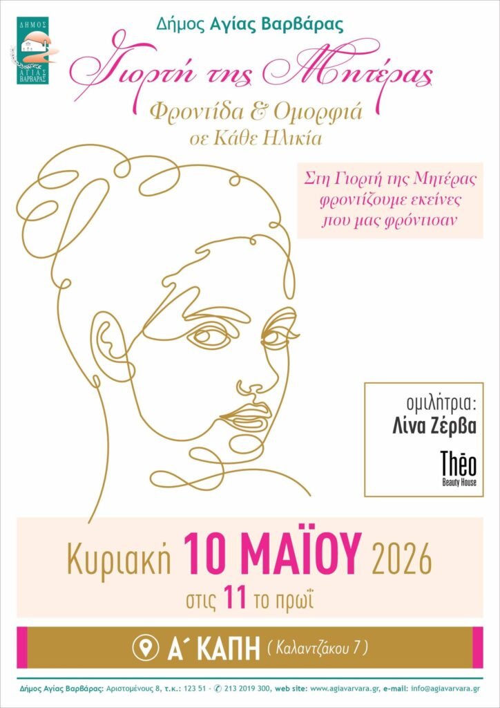 Με αφορμή τη Γιορτή της μητέρας, ο Δήμος μας προγραμματίζει εκδήλωση αφιερωμένη στις γυναίκες μεγαλύτερης ηλικίας που μπορεί να έχουν γίνει μητέρες και γιαγιάδες αλλά αξίζουν τη φροντίδα του εαυτού τους και την ομορφιά.